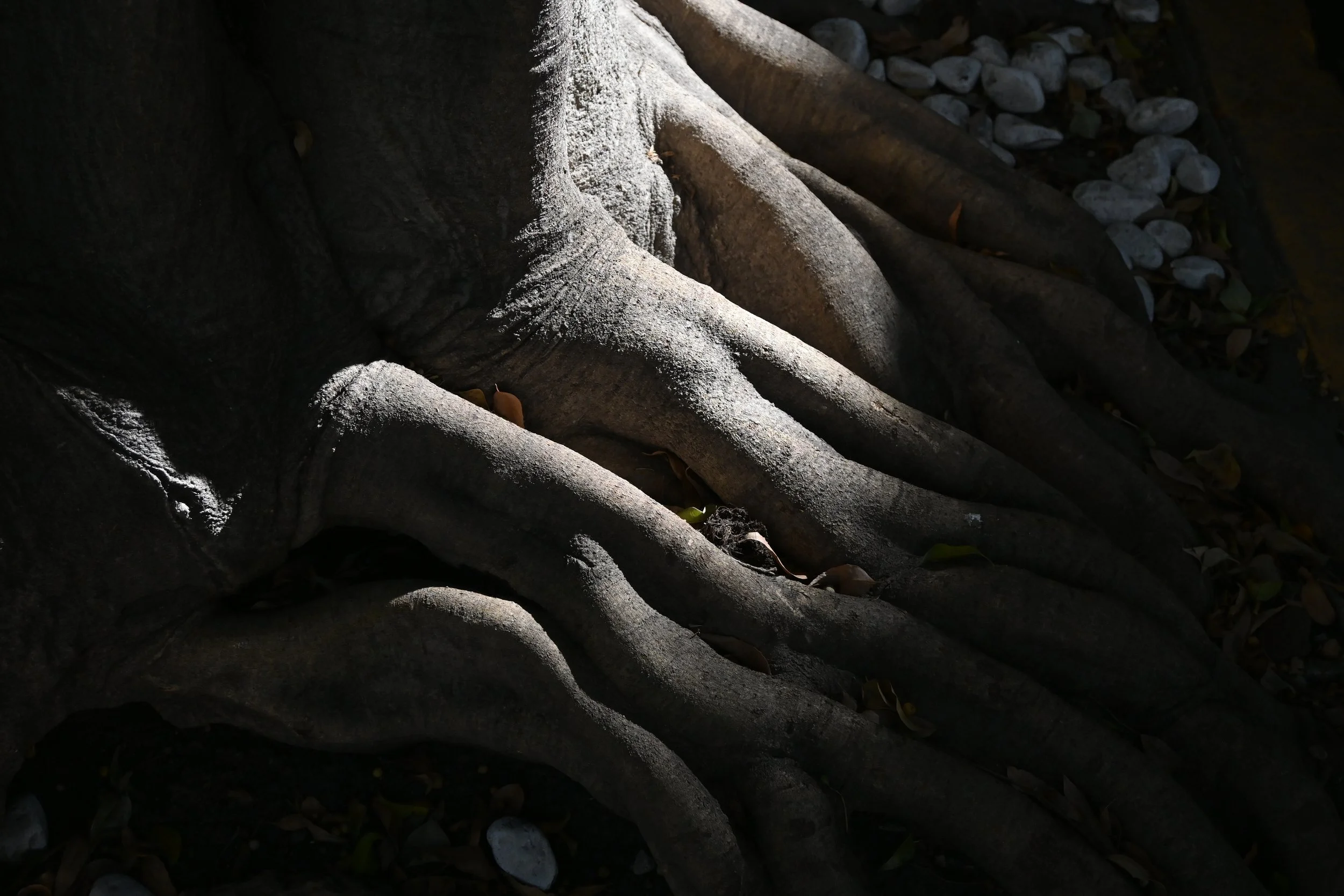 Weeping fig roots on tree lined street, Escandón, Mexico City